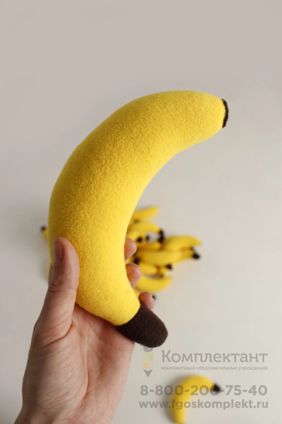 Банан сделан из мягкого флиса, плотно набитого холлофайбером.