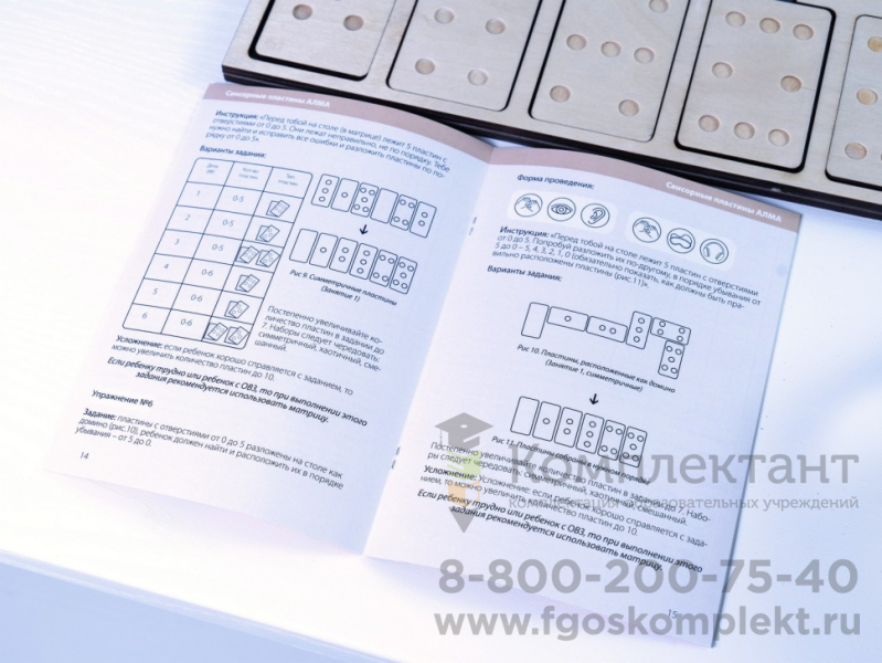 Занятия с комплектом «Сенсорные пластины АЛМА» направлены на развитие мышления через тактильное восприятие. В состав комплекта входит сборник упражнений, в котором предлагаются подробно описанные задания для разного возраста и разного уровня развития детей.