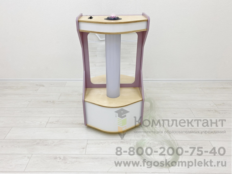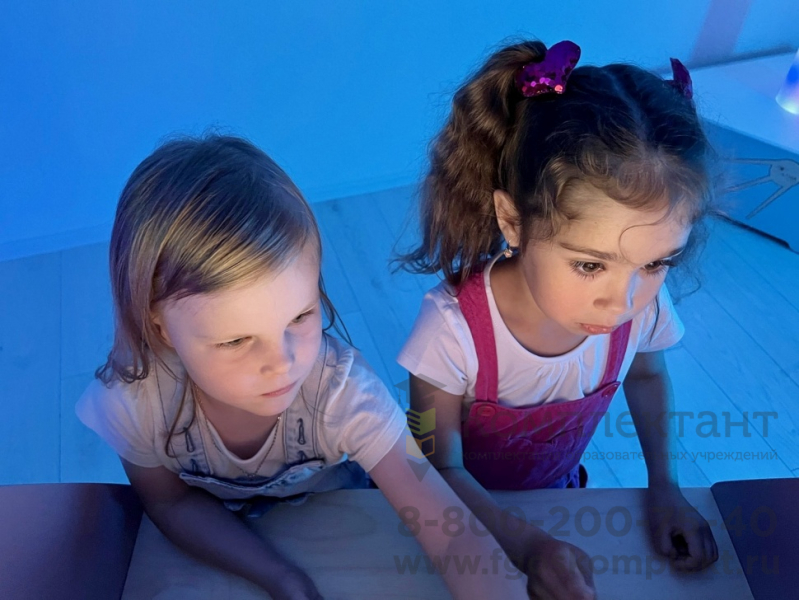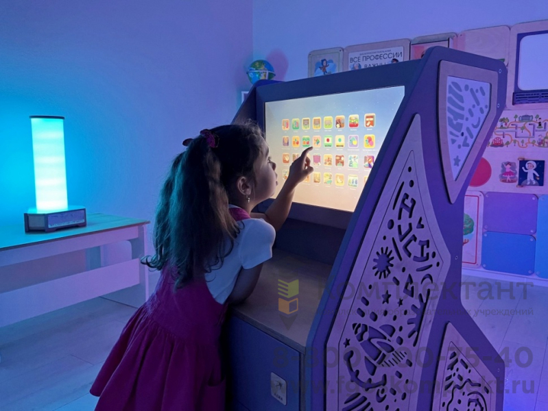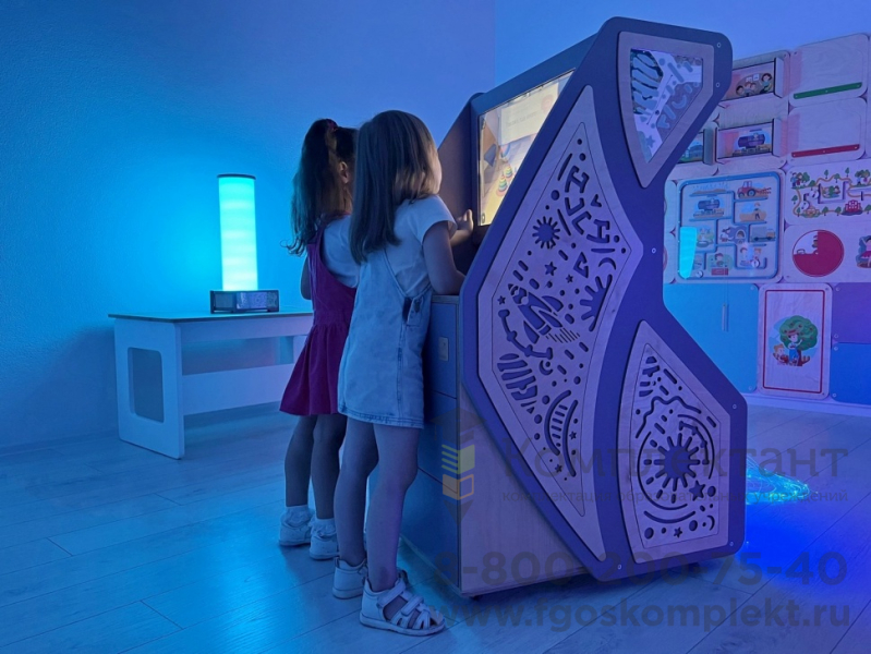 Универсальное оборудование для оснащения сенсорных комнат в детских садах и кабинетов детских психологов. Мобильный комплекс включает: мультимедийную сенсорную панель с профессиональным ПО «Профиль психолога АЛМА», световую колонну, фонтан из фибероптического волокна, сенсорные панели, проектор звёздного неба и встроенную музыкальную систему.