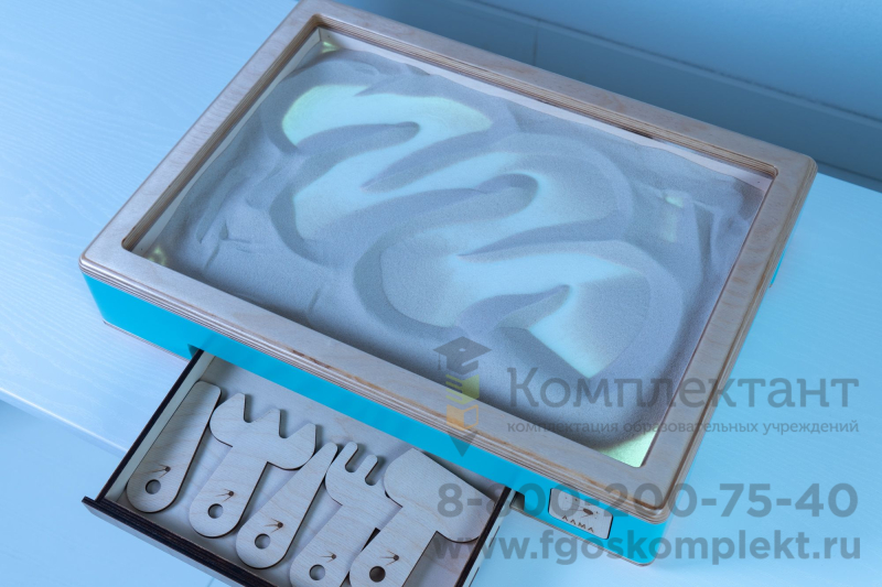 Компактный вес и размер Песочных историй, позволяют без труда проводить занятия на уже имеющихся столах, в образовательном учреждении.