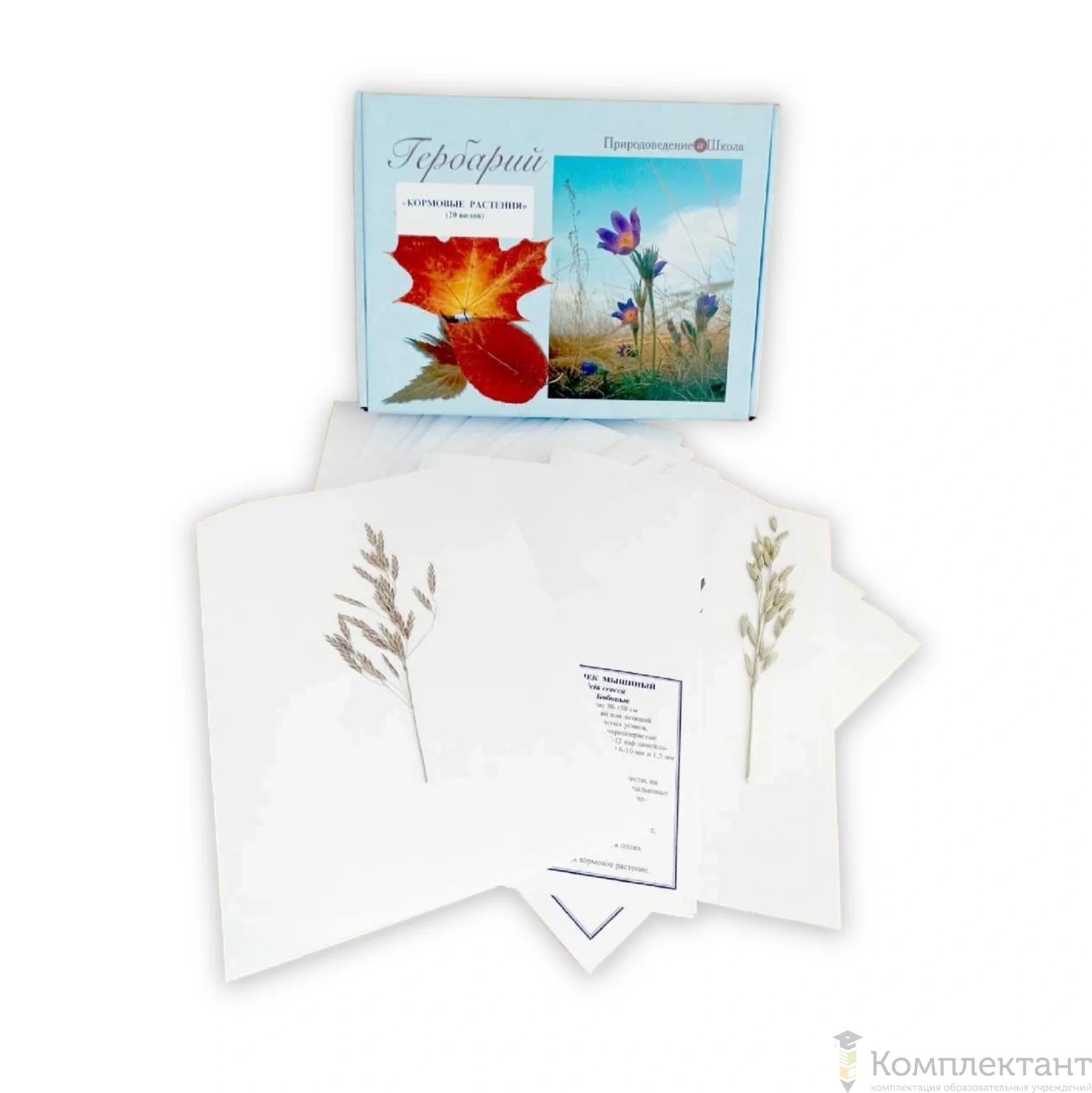 В состав гербария входят: горошек мышиный; горошек посевной; клевер луговой; костёр; кукуруза; люпин; люцерна; мятлик; овёс; просо; пшеница; рожь; свёкла; сорго; тимофеевка; чечевица; чина; овсяница луговая; эспарцет; ячмень (всего 20 гербарных листов формата А3). Гербарий сопровождается электронным пособием на CD с описанием и изображениями растений входящих в состав.