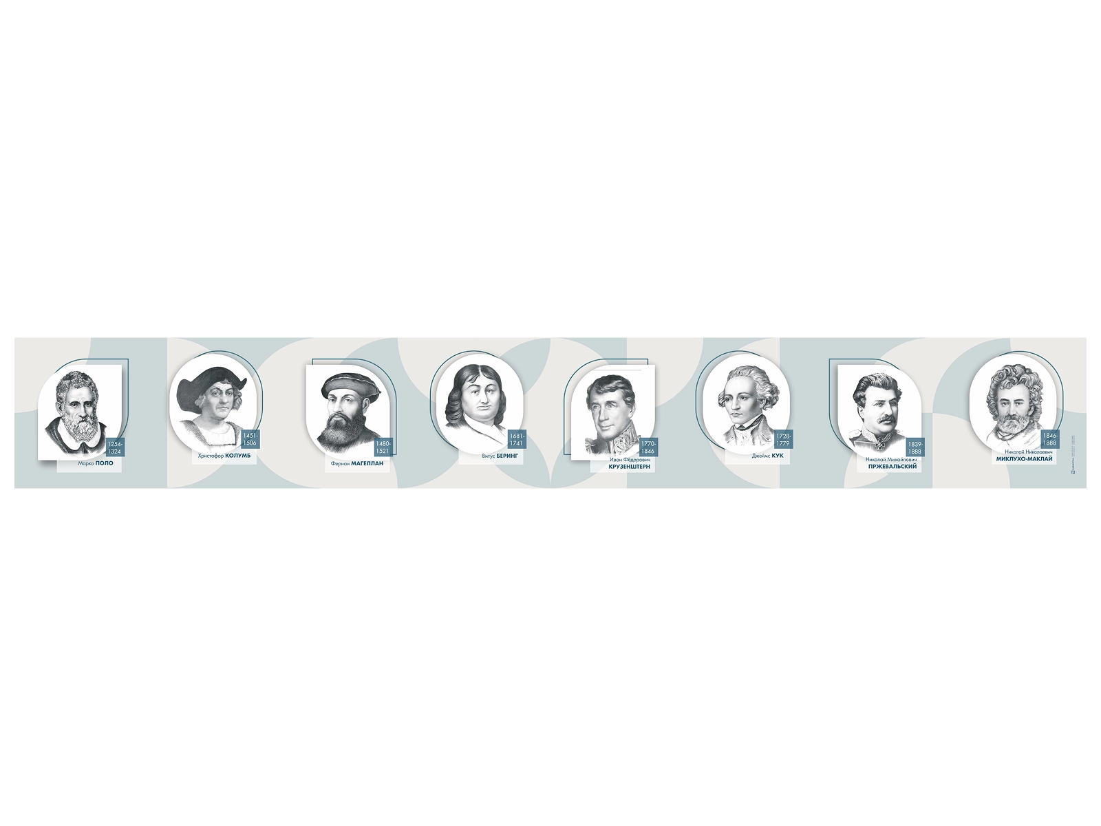 Стенд-лента представляет собой панель, на которой размещена информация о выдающихся путешественниках и ученых-географах.