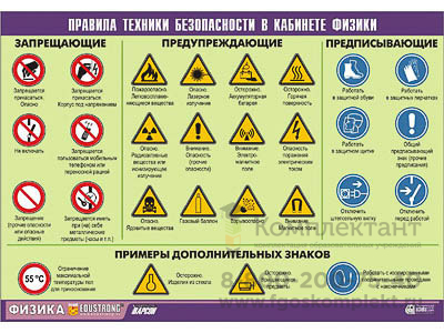 Таблица демонстрационная Правила техники безопасности в кабинете физики (винил 70x100)