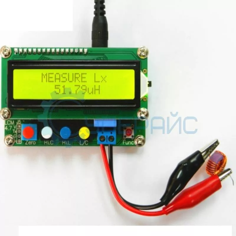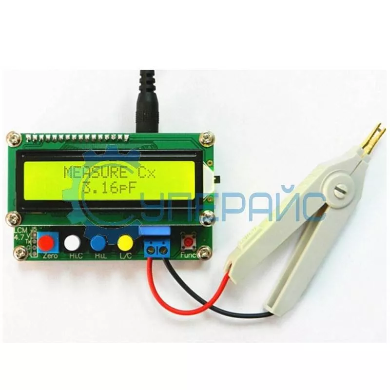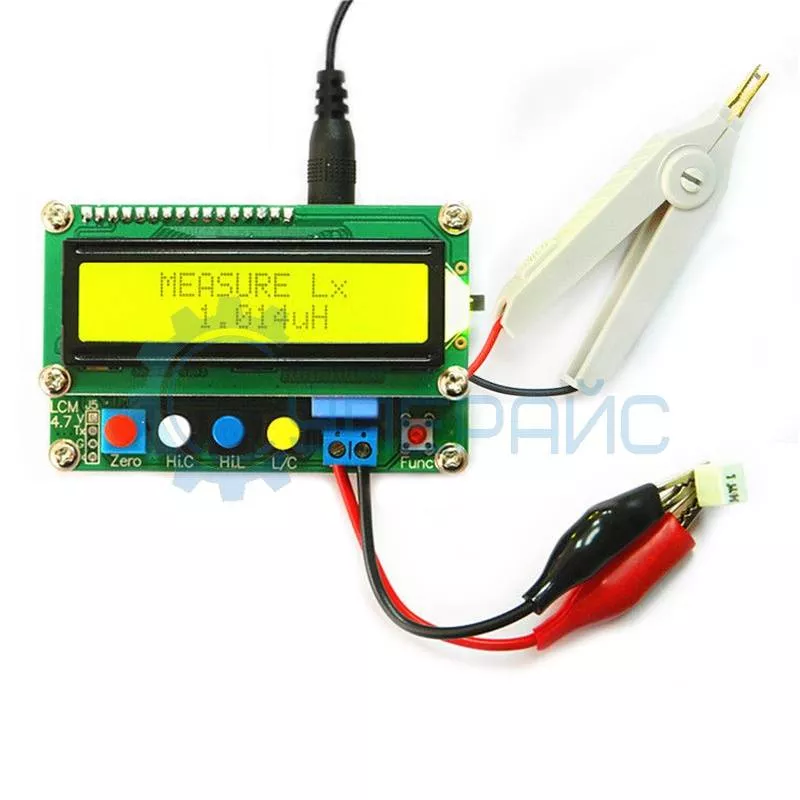 Цифровой измеритель емкости конденсаторов и индуктивности катушек LC100-A, укомплектован щупами для SMD. Его следует купить для измерения параметров с точностью до 1%. Небольшая цена прибора объясняется бескорпусным вариантом поставки. Для получения максимальной точности оба параметра измеряются на 2-х диапазонах.