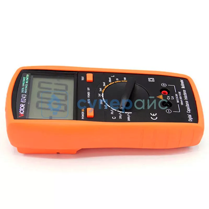 Комплектация | измеритель емкости и индуктивности Victor LC VC6243 – 1 шт крокодилы (комплект из двух шнуров) – 1 шт батарея 6F22 – 1 шт адаптерная вилка – 1 шт |