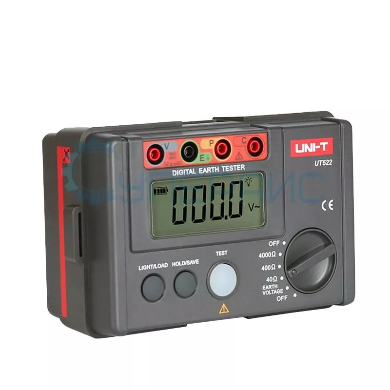 UNI-T UT522 – это компактное измерительное устройство с высокой точностью, необходимое для измерения сопротивления заземления в трех диапазонах: 0 - 40 Ом с точностью ±(2% + 20), 0 - 400 Ом ±(2% + 3) и 0 - 4000 Ом ±(2% + 3). Помимо этого, прибор имеет возможность измерения напряжения заземления переменного тока до 400 В. Данный измеритель благодаря встроенной функции Data Hold, способен удерживать данные на экране, а также позволяет хранить до 20 показаний с последующим просмотром. В приборе предусмотрены индикация низкого разряда батареи, двойная изоляция, автоматическое отключение питания после 10 минут бездействия, двух и трех проводная схема включения. Удобные размеры, ударопрочный корпус и ЖК-дисплей с максимальной разрядностью 4000 делают UNI-T UT522 идеальным инструментом для проверки сопротивления заземления в различных лабораторных и полевых условиях.