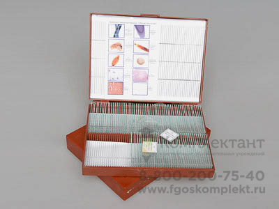 Предназначен для проведения широкого спектра лабораторных работ, направленных на изучение биологических объектов на клеточном и гистологическом уровнях. Снабжен экспликацией на русском и английском языках. При необходимости препараты окрашены, что делает их детали более контрастными. Комплект содержит методические рекомендации по проведению лабораторных работ, снабженные иллюстрациями, на которых показано, какие детали препарата можно рассмотреть и какое увеличение рекомендуется для этого использовать.