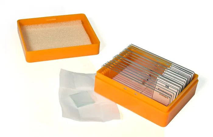 Дополнительно: предметные (12 шт.) и покровные стекла (20 шт.).