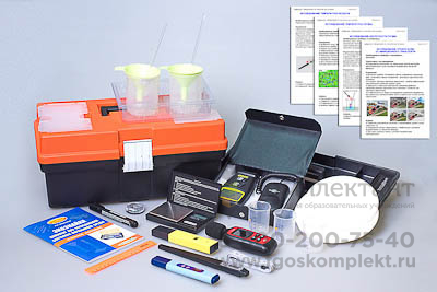 Габаритные размеры в упаковке (дл.*шир.*выс.), см: 42*20*19. Вес, кг, не более 2,8. Представляет собой комплект цифровых датчиков в виде портативных приборов по каждой измеряемой характеристике, лабораторной посуды, необходимой для проведения исследований, набора карточек с разработанными постановочными исследовательскими задачами и нормативами, и учебно-методическое пособие (автор канд. геогр. наук И.Л. Марголина). Методика постановочных задач адаптирована для проектных исследований в среднем образовании и включает в себя как типичные исследования по оценке качества окружающей среды (водных объектов, воздушной среды, почвенного покрова, осадков, снежного покрова), так и современные направления экологических исследований по оценке экологического состояния жилых и учебных помещений. Приборная и адаптированная учебно-методическая составляющие пособия позволяют учащимся реализовать самостоятельные проектные исследования по направлениям отдельных предметных дисциплин и междисциплинарные (комплексные) проекты.