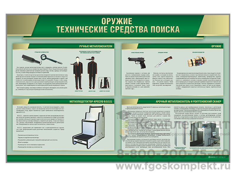Стенд представляет собой полноцветную панель, на которой изображено оружие и технические средства его поиска.