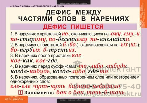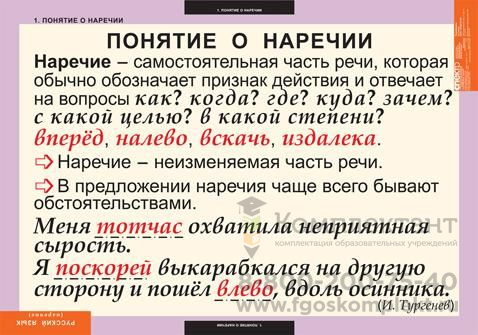 Комплект таблиц Русский язык Наречие (6 шт 68х98)