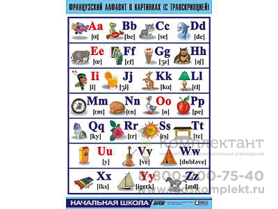 Таблица демонстрационная Французский алфавит в картинках (с транскрипцией)(винил 70х100)