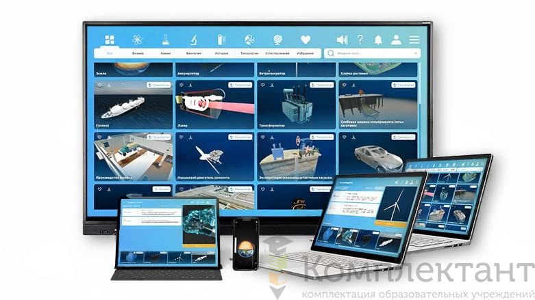Интерактивное наглядное 3D пособие «Познание», позволяет с помощью трехмерной графики и анимации изучить курсы школьных дисциплин и включает в себя набор всех существующих виртуальных сцен.