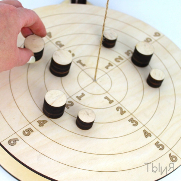 - в наборе: подставка, держатель, круг с разметкой, брусочки, игральные кости;