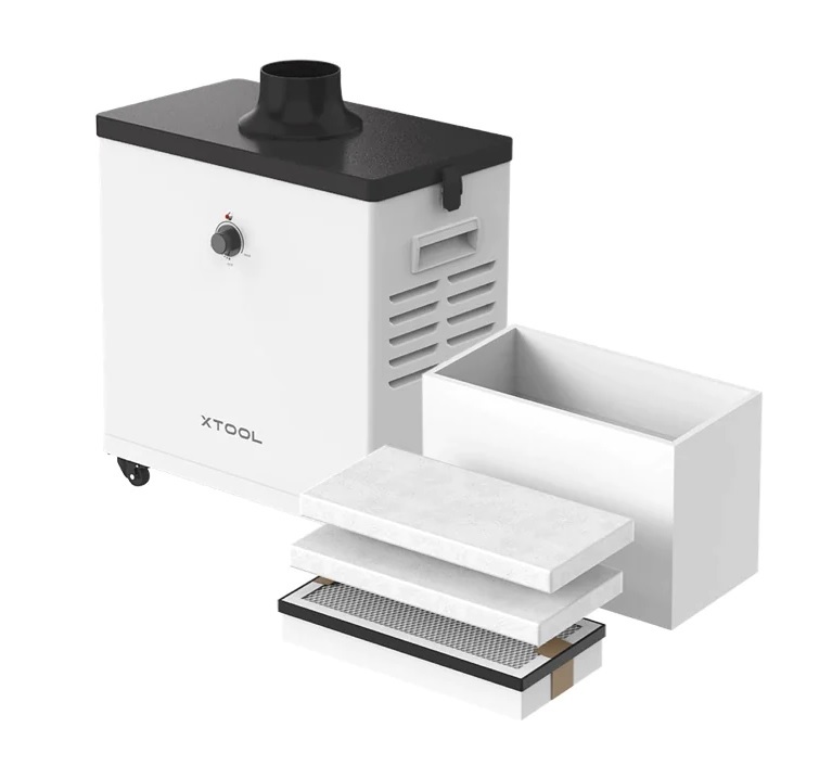Новый настольный лазерный резчик/гравировщик от Makeblock с блоком фильтрации воздуха и двумя 16 Мп-камерами.