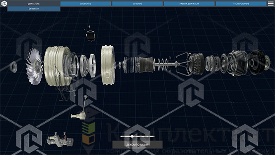 Виртуальный учебный комплекс предназначен для проведения виртуальных лабораторных работ по неразрушающему контролю и дефектоскопии газотурбинных и реактивных двигателей.