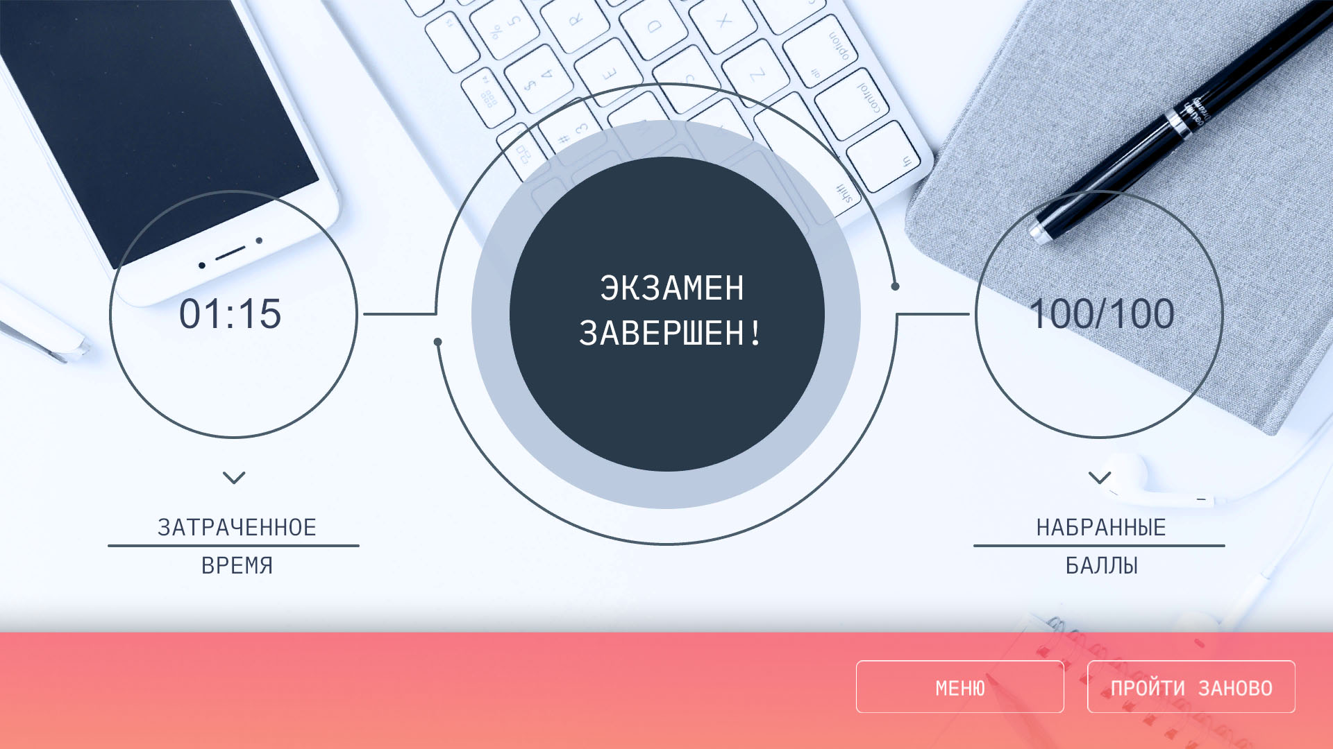 Режим «Экзамен» предполагает самостоятельное прохождение, без подсказок.