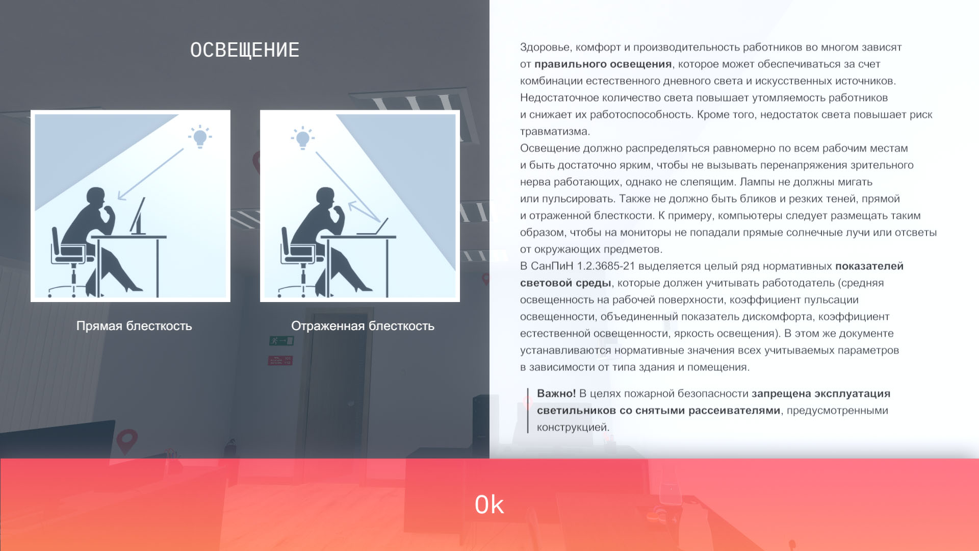 В режиме «Обучение» пользователь знакомится со всеми нарушениями в данной локации, читает поясняющие тексты.