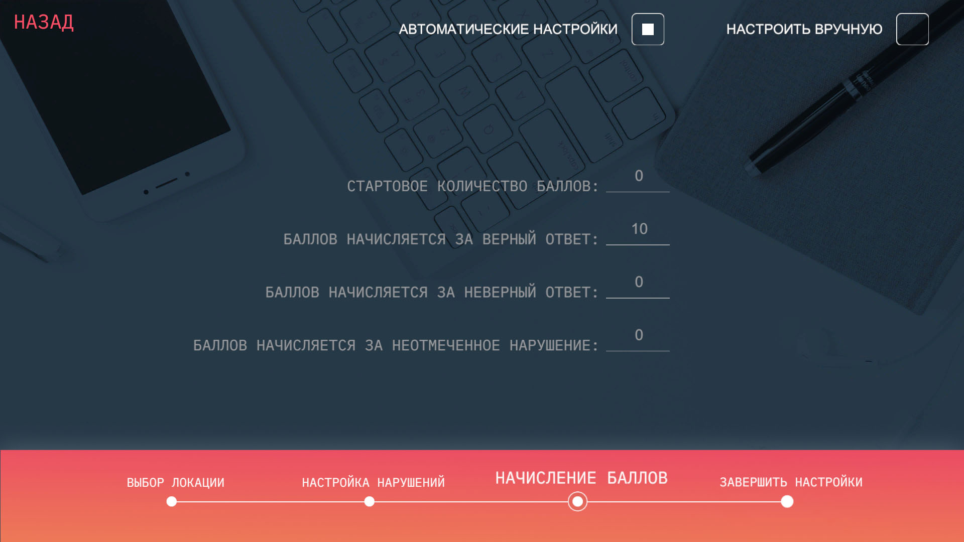 • Самостоятельный выбор локаций, которые будут представлены в тренажере