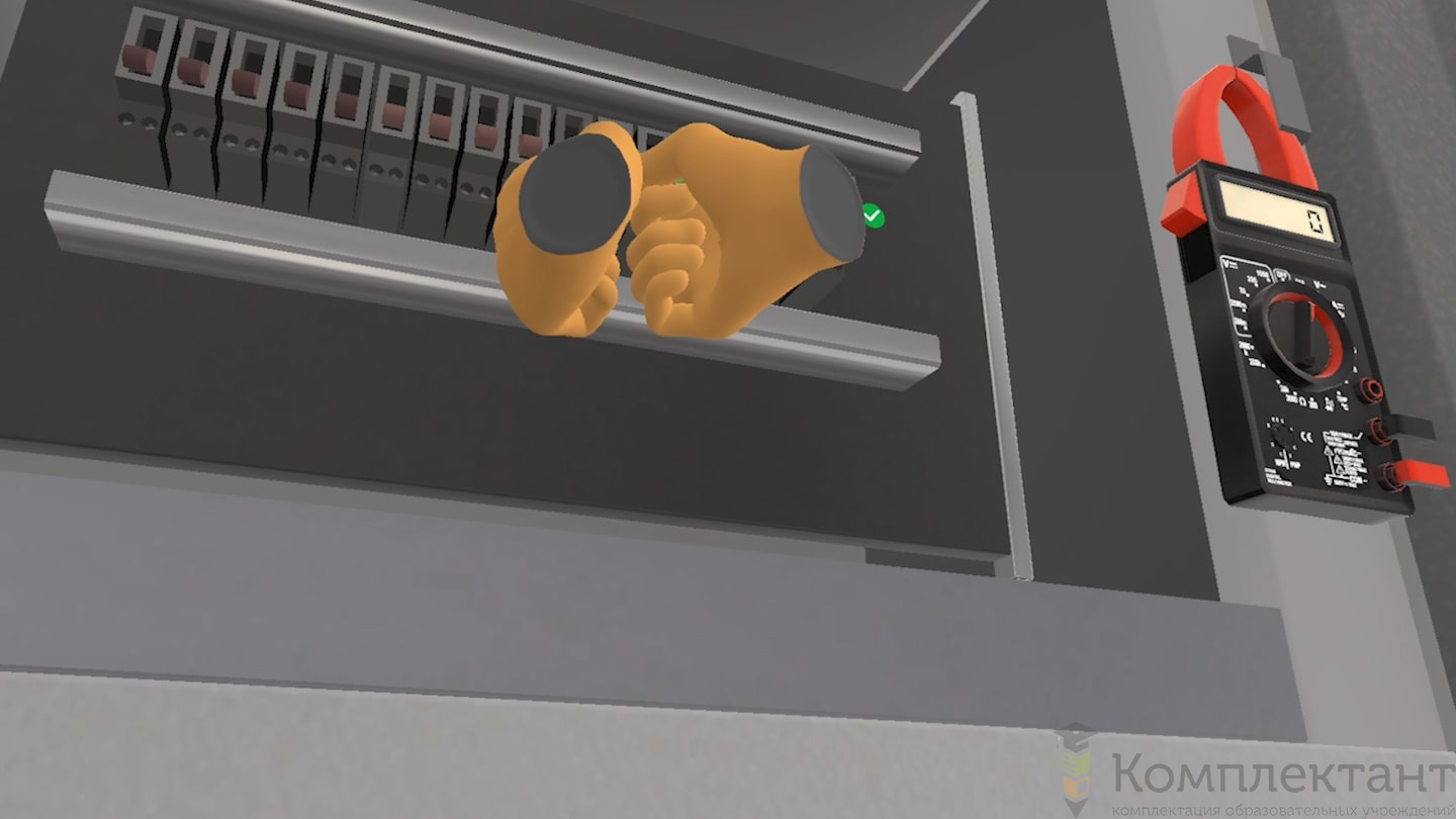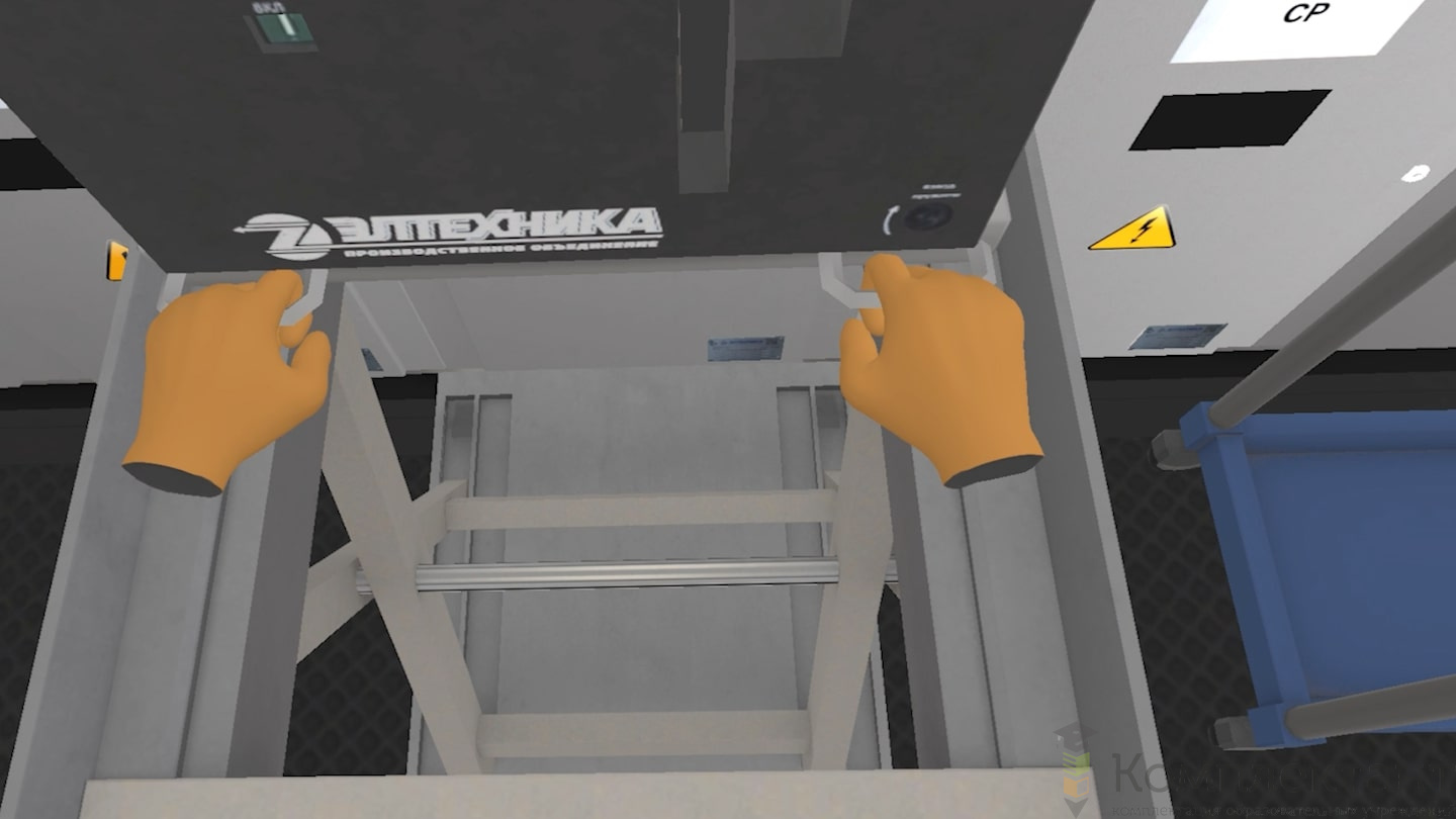Виртуальный (VR) тренажер «Электробезопасность 2-4 группы» позволяет пользователю подготовиться к отключению ячейки КРУ и всем необходимым этапам проведения работ. В состав тренировки пользователя входят: