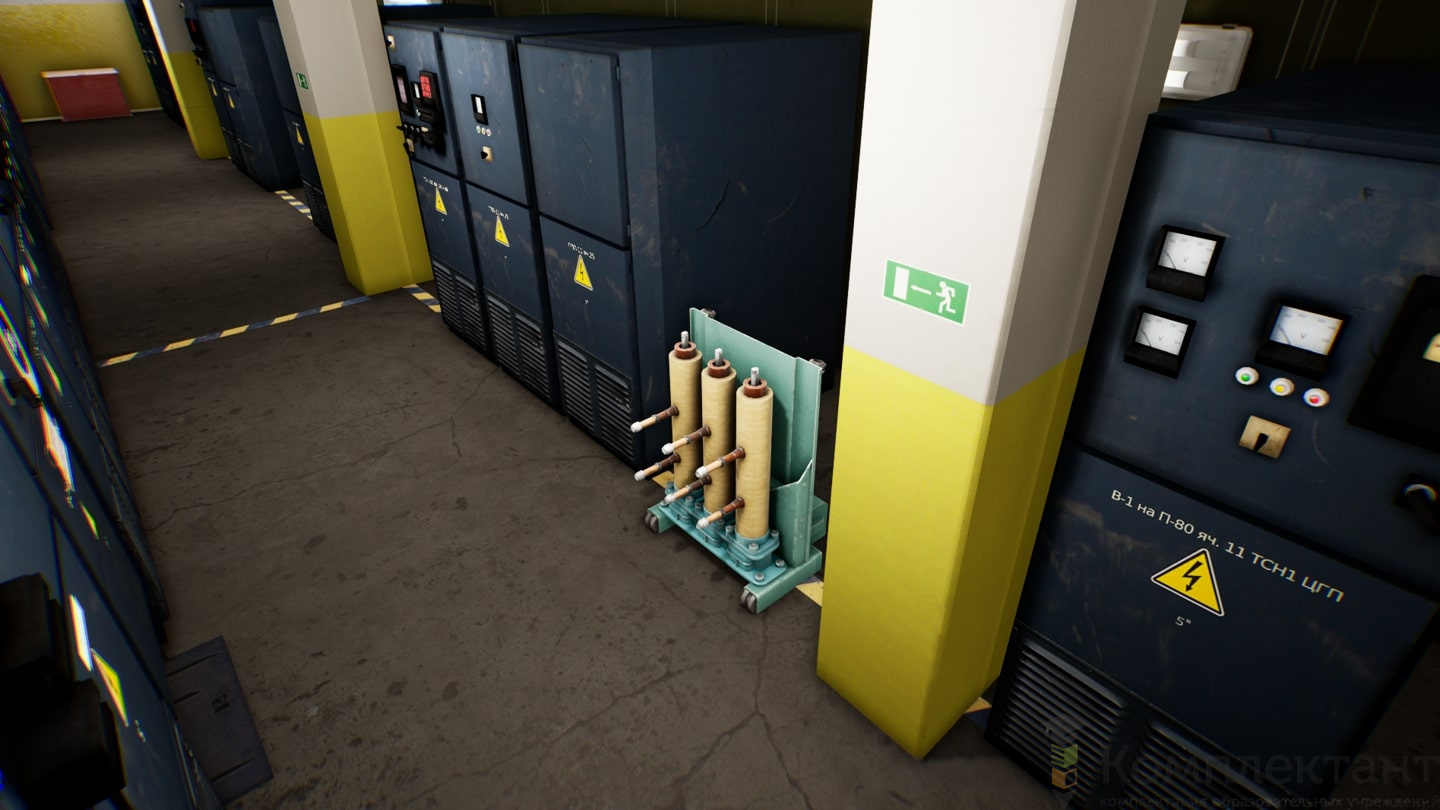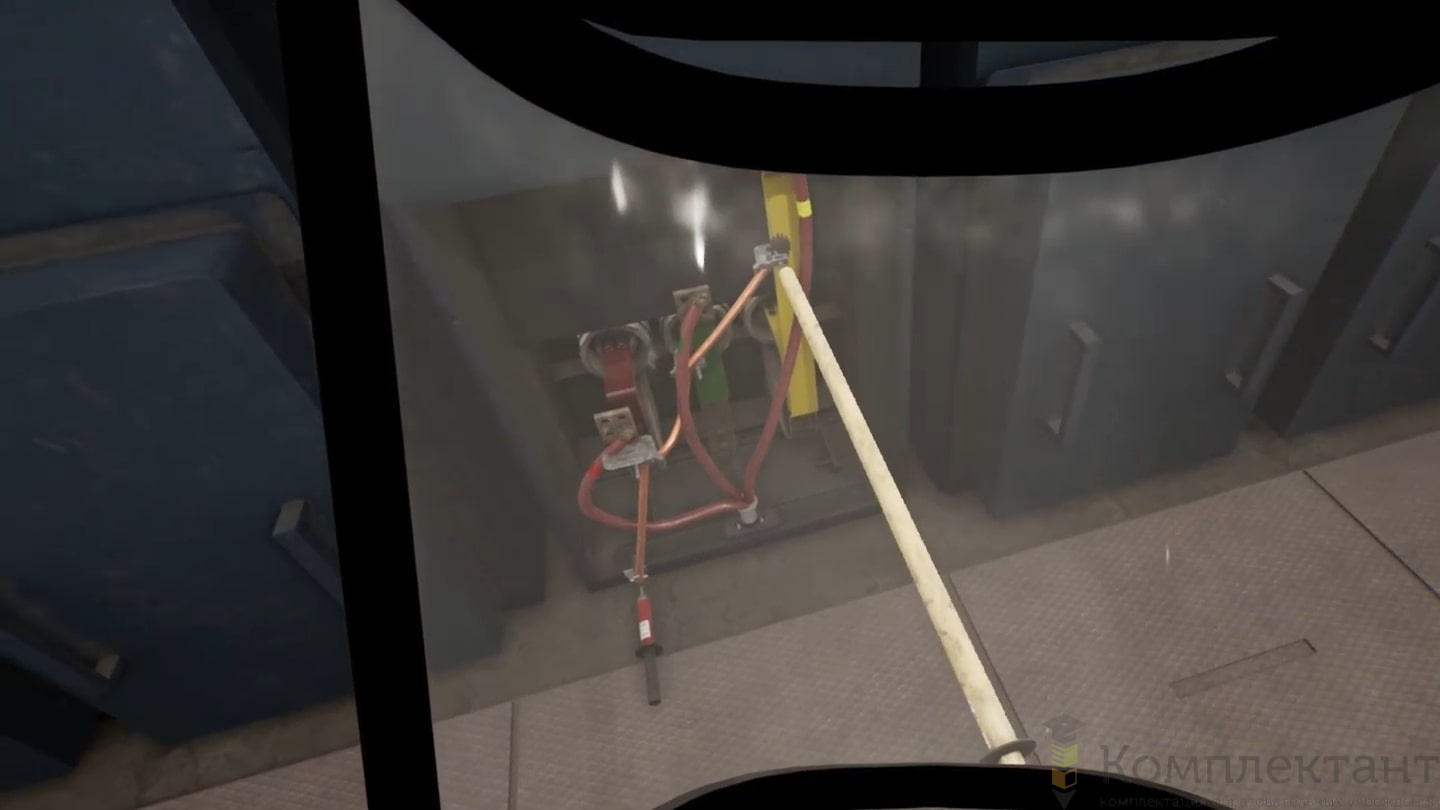 Тренажер предназначен для обучение электромонтеров (оперативный, оперативно-ремонтный персонал), в том числе вновь принятых работников. На тренажере сотрудники отрабатывают навыки безопасного выполнения операции по установке переносных заземлений в электроустановках выше 1000 В, выбор напарника под текущее задание, выбор переносного заземления и штанги под переносное заземление и сборка длинной штанги приближенных к реальности. Доступны VR и ПК режимы.