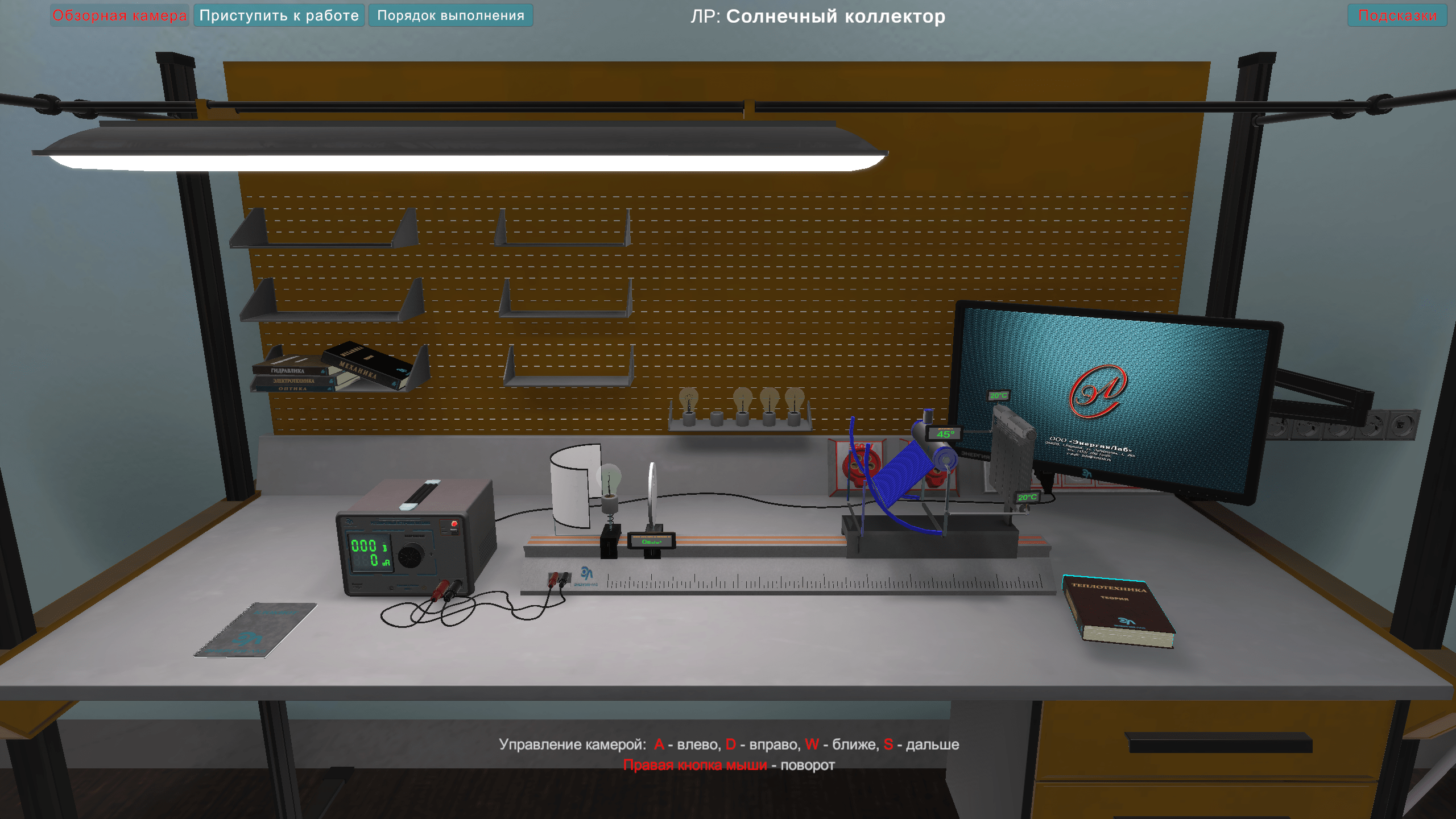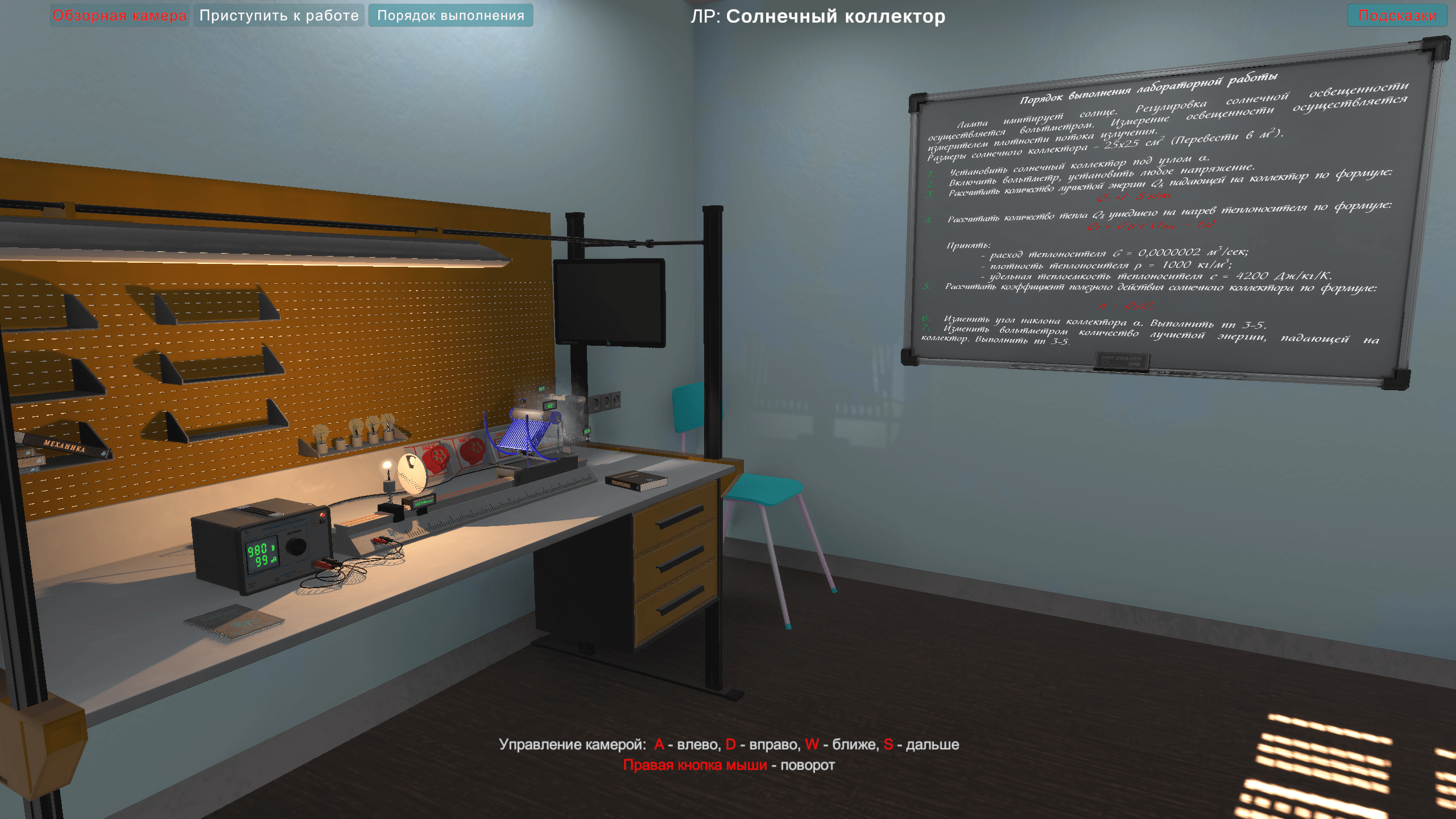 Виртуальная лабораторная работа «Солнечный коллектор» выполняется в программном виртуальном продукте и предназначен для интерактивного выполнения лабораторной работы.