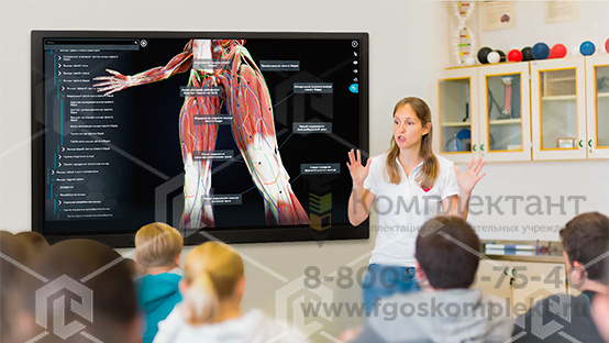 Интерактивная сенсорная панель с комплектом интерактивных обучающих модулей по направлению медицина и биология диагональю не менее 65”.