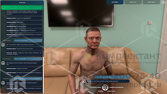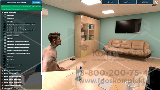 Специализированный учебный комплекс представляет собой виртуальный тренажер для отработки навыков диагностики пациента с набором клинических признаков на базе реальных историй болезней. Данный тренажерный комплекс создан для обучения и тренировки студентов и молодых специалистов в области медицины. При помощи этого тренажера пользователи могут подробно изучать структуру и функционирование различных систем организма человека, а также изучить порядок особенности диагностики различных заболеваний.