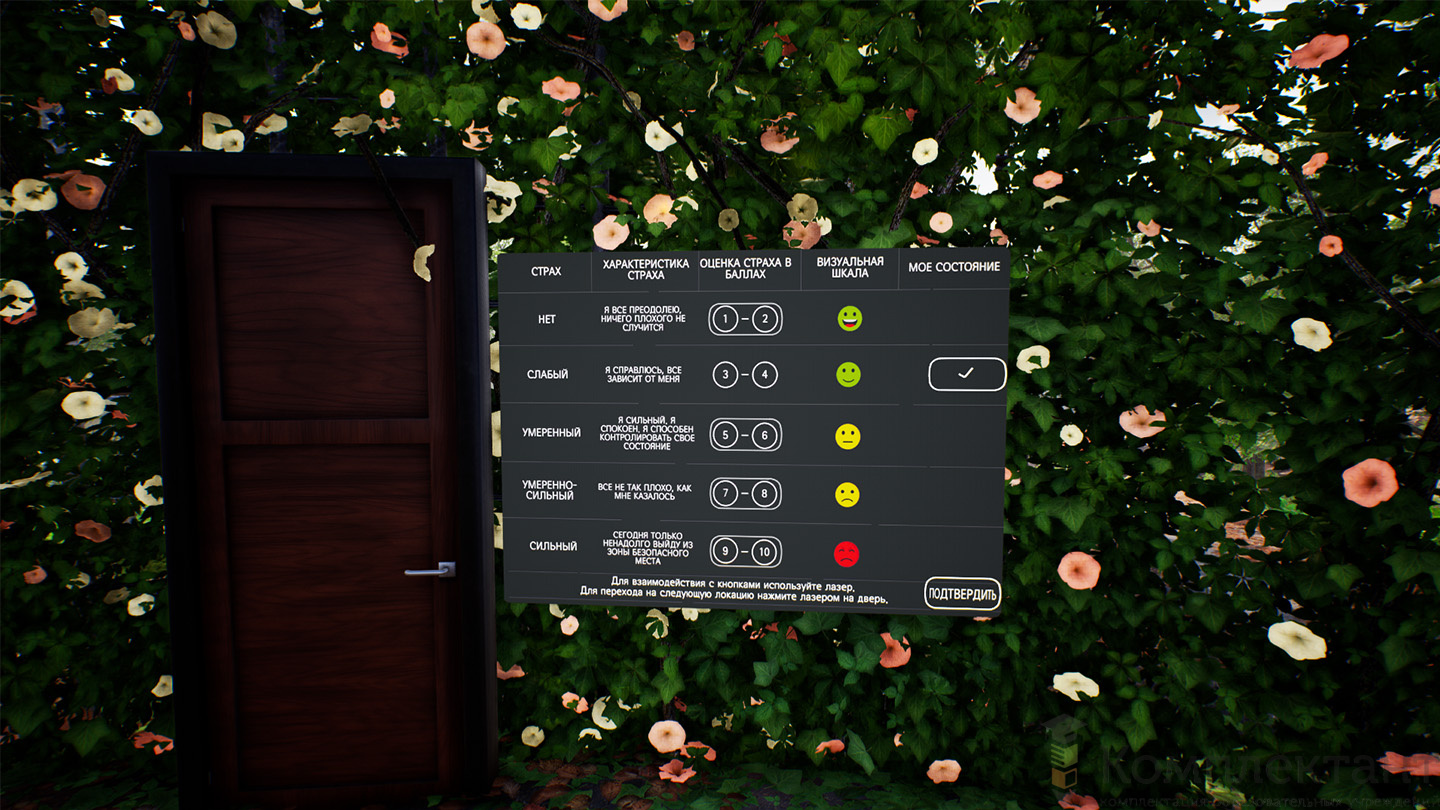 Тренажёр предназначен для лечения социальной тревожности и фобий с использованием технологии виртуальной реальности в контексте психологической и когнитивной терапии. Его главная задача — помочь пациентам, страдающим агорафобией или схожими расстройствами, шаг за шагом снижать уровень тревожности в безопасной и управляемой обстановке.