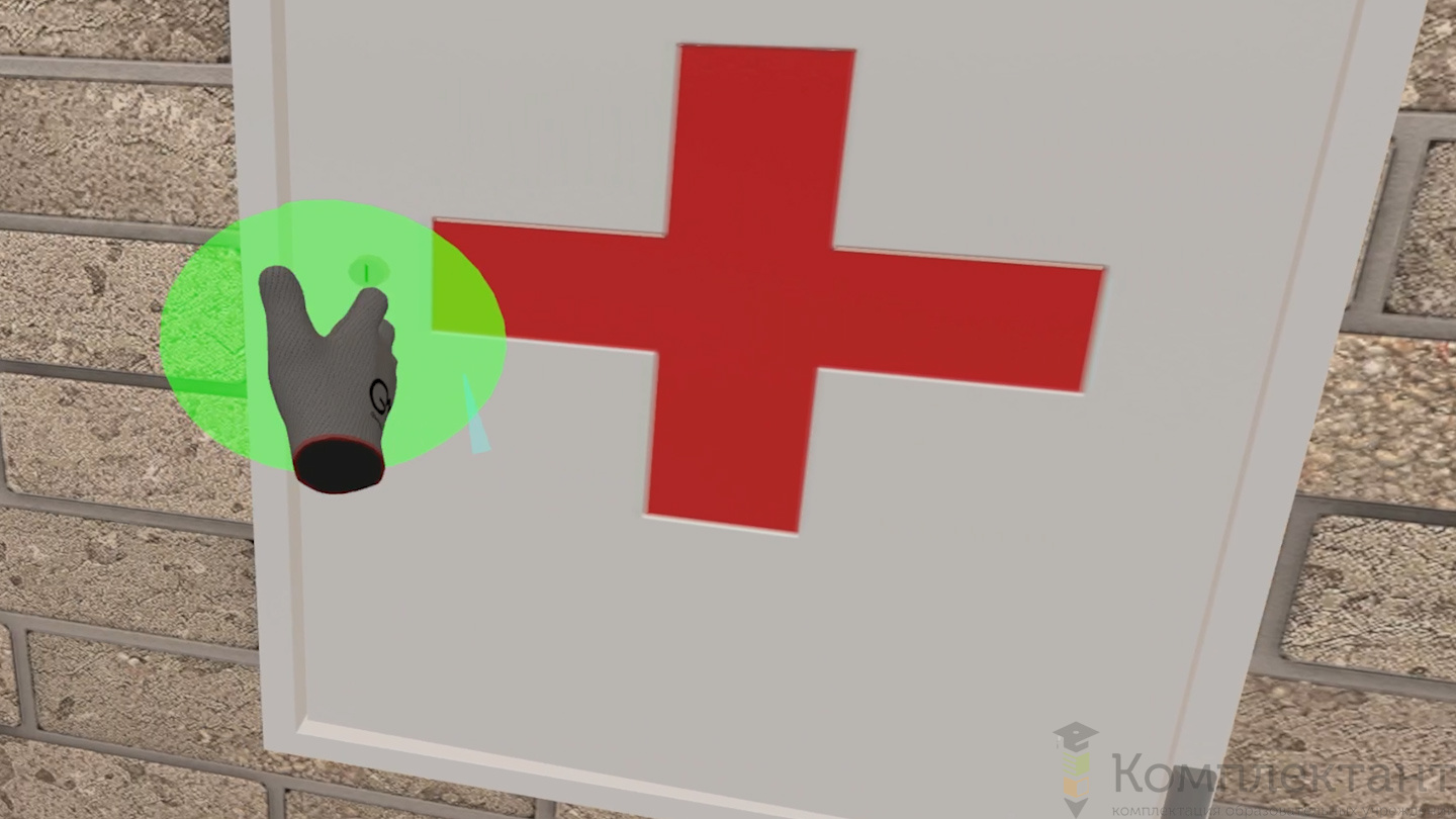 Пользователь окажется свидетелем падения коллеги с лестницы, которое привело к потере сознания и травме ноги. Пользователю будет необходимо прекратить работу, взять аптечку и проверить состояние пострадавшего работника. Затем попросить своего коллегу вызвать скорую помощь и начать делать искусственное дыхание для поддержания жизни пострадавшего, далее дождаться скорую помощь. VR-тренажер научит пользователя принимать правильные решения в стрессовой ситуации и действовать в чрезвычайных ситуациях. Благодаря подробной обратной связи и инструкциям пользователь научится эффективно реагировать в реальных чрезвычайных ситуациях.