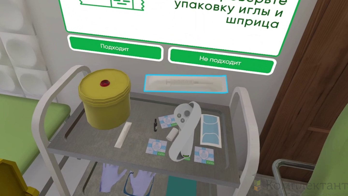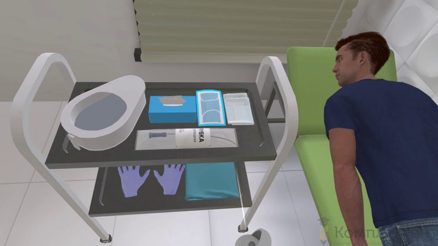 Виртуальный (VR) тренажер «Сестринское дело» позволяет пользователям погрузиться в реалистичную среду клиники и потренироваться в выполнении медицинских процедур по чек-листам, написанным в соответствии с государственными стандартами. Тренажер включает в себя 6 интерактивных сценариев для прохождения обучения по правильному выполнению медицинских процедур и аттестации для оценки полученных навыков в виртуальной реальности.
