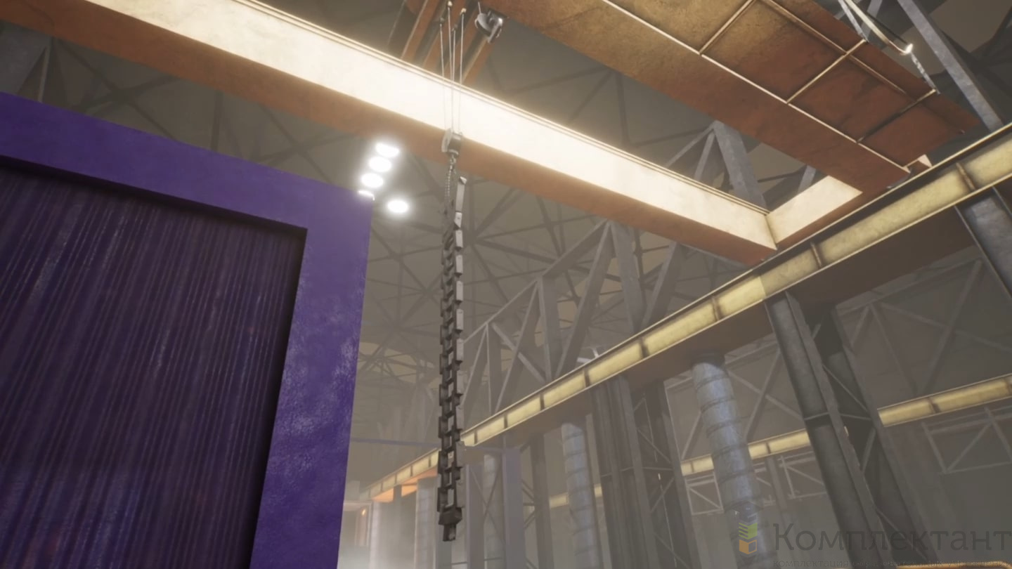 Тренажер Оператор машины непрерывного литья заготовок. Установка непрерывной разливки стали предназначен для повышения уровня профессиональных навыков управления технологическим процессом с одновременной теоретической и практической подготовкой на конкретном рабочем месте операторов МНЛЗ (машины непрерывного литья заготовок). Отработка следующих операций: подача сигнала машинисту крана, перевозка затравки при помощи ГПМ, заведение затравки в кристаллизатор, замена секций. Доступны VR и ПК режимы.