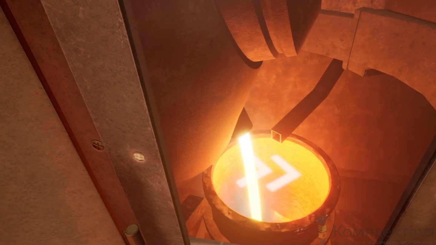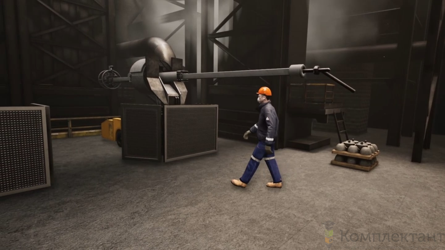 Тренажер «Выплавка конвертерной стали» предназначен для отработки практических навыков сотрудников по выполнению действий до начала и во время ремонта сталевыпускного отверстия, произвести выпуск плавки из конвертера в сталеразливочный ковш путем наклона конвертера. Отработка действий по выполнению операций действий полусухого торкретирования конвертера, прогар сталеразливочного ковша во время выпуска». Отработка ПЛА по позиции «Вынос лёточных блоков после ремонта лётки во время выпуска». Отработка ПЛА по позиции «Прогар конвертера в районе ванны жидкого металла во время продувки плавки». Доступны VR и ПК режимы.