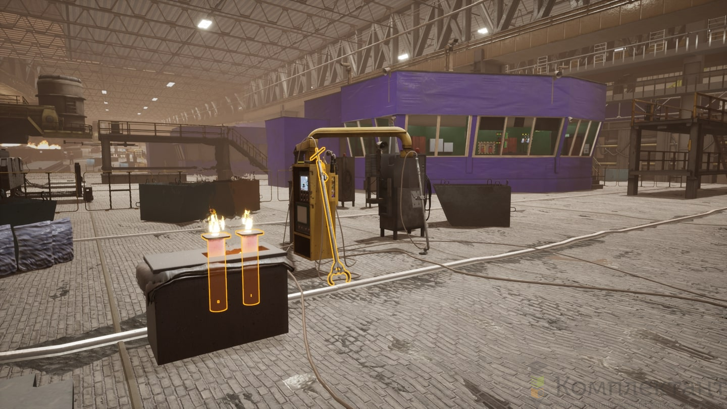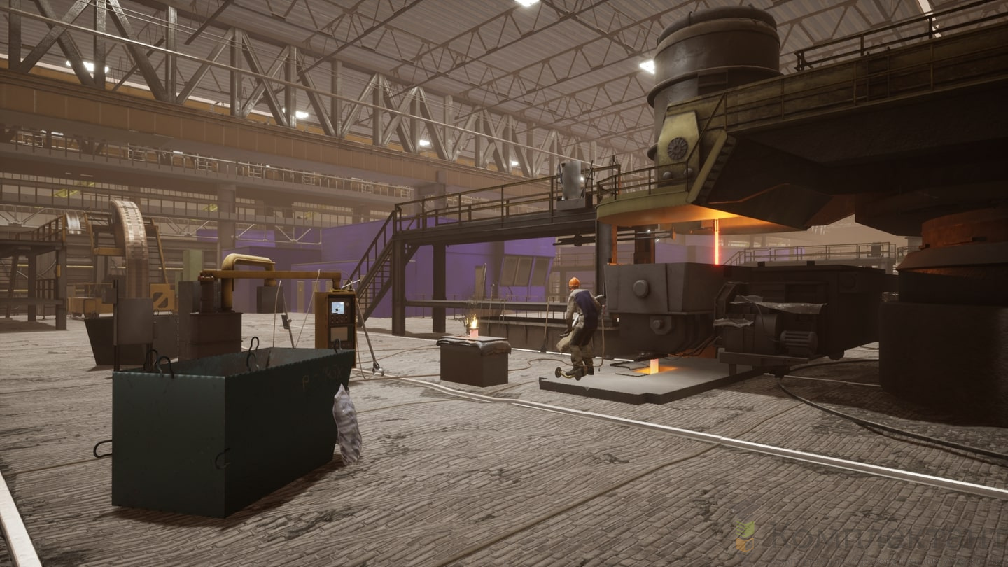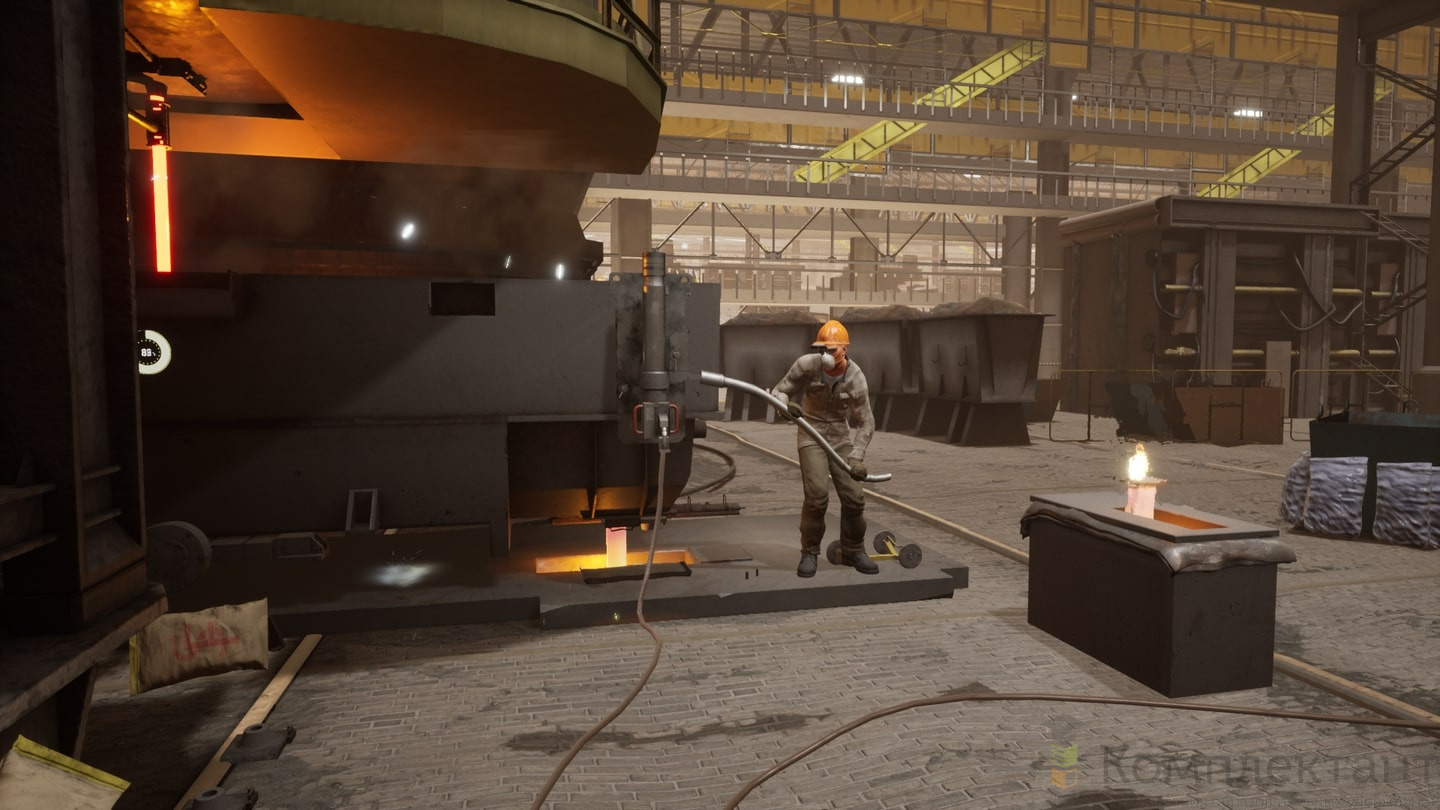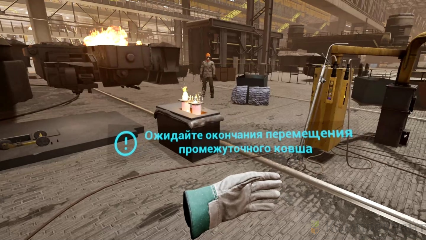 Тренажер «Разливщик стали» воссоздает ситуацию, в которой пользователь отрабатывает навыки правильной и безопасной разливки стали. Выбирает правильные СИЗы, проверяет инструменты, осуществляет выставку уровня металла в кристаллизаторе при использовании переносного датчика уровня металла установки непрерывной разливки стали (УНРС) и запуск разливки на УНРС. Доступны VR и ПК режимы.