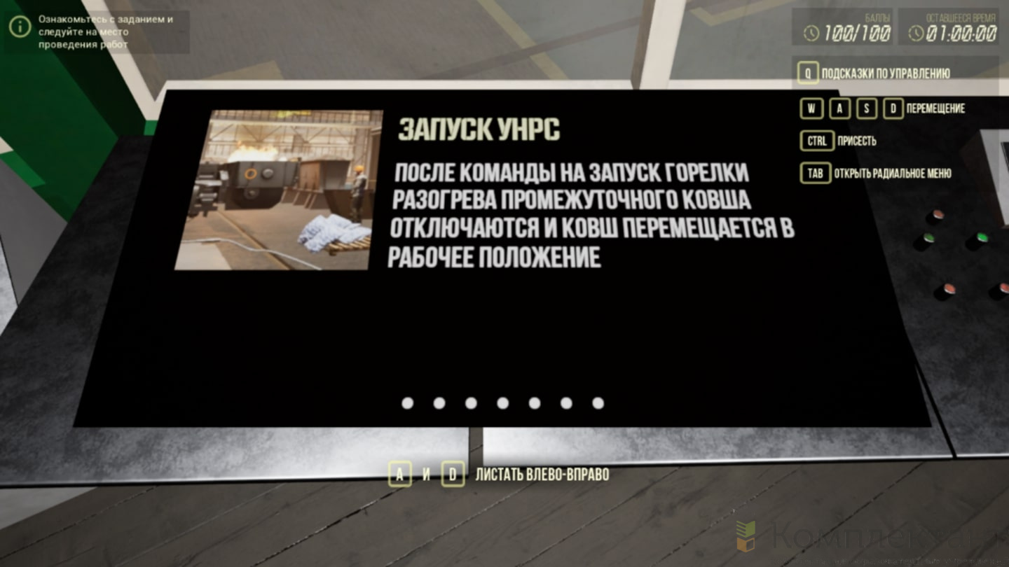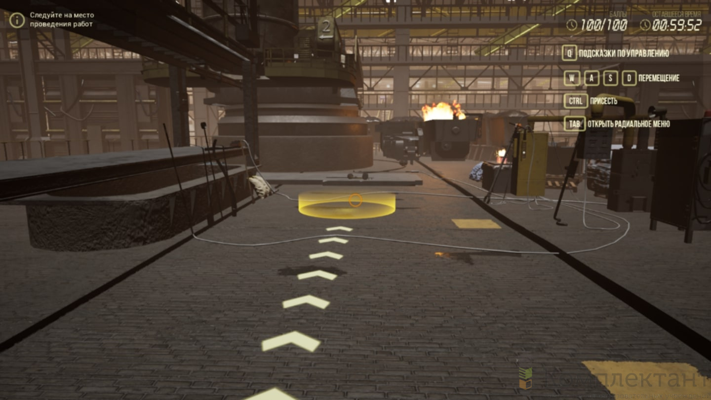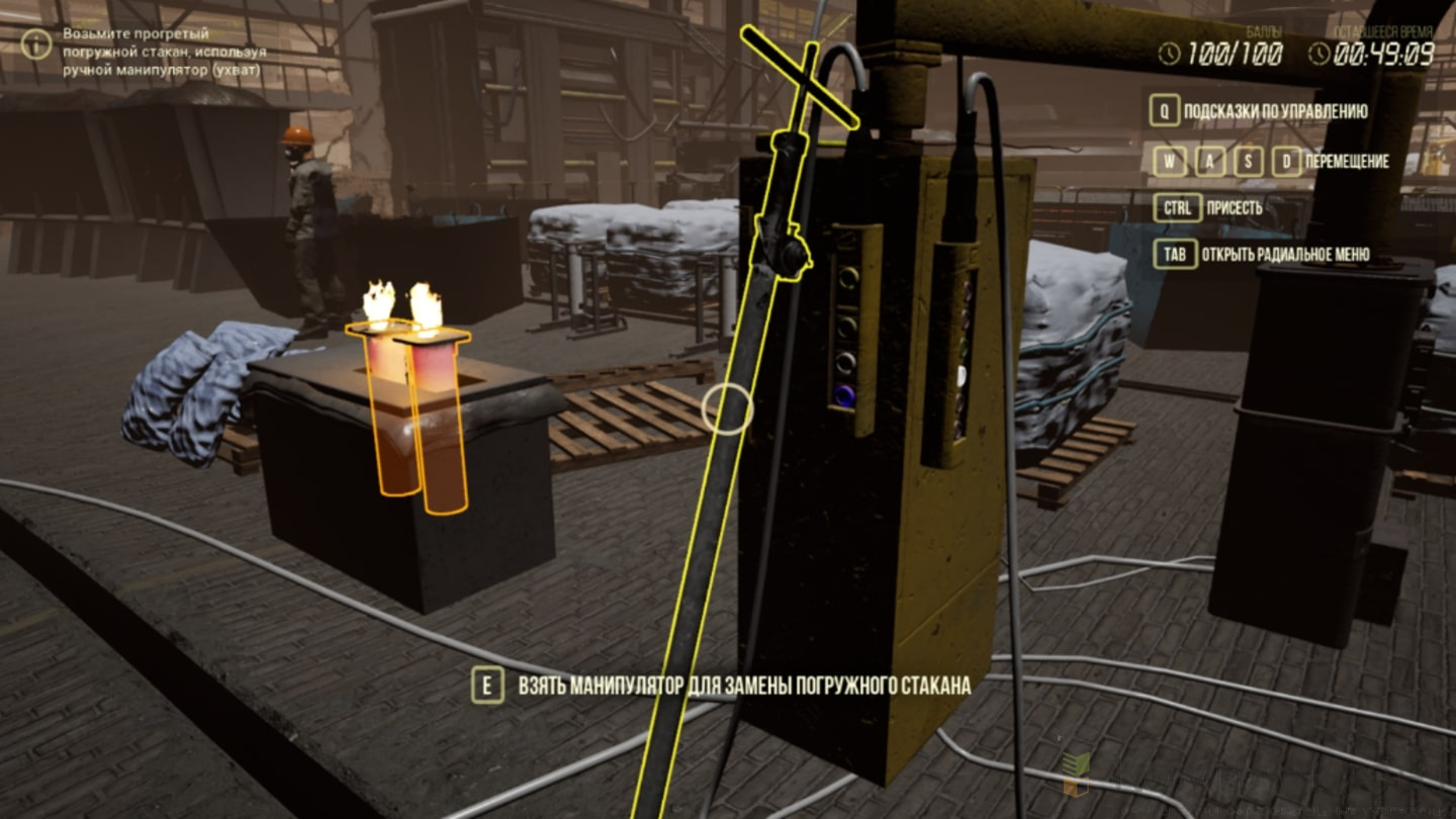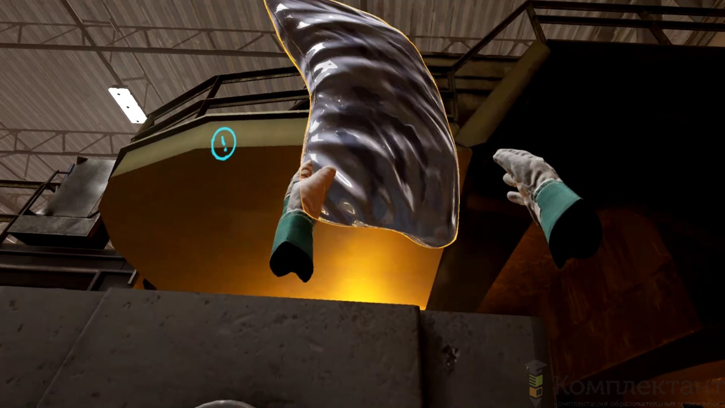 Тренажер «Разливщик стали» воссоздает ситуацию, в которой пользователь отрабатывает навыки правильной и безопасной разливки стали. Выбирает правильные СИЗы, проверяет инструменты, осуществляет выставку уровня металла в кристаллизаторе при использовании переносного датчика уровня металла установки непрерывной разливки стали (УНРС) и запуск разливки на УНРС. Доступны VR и ПК режимы.