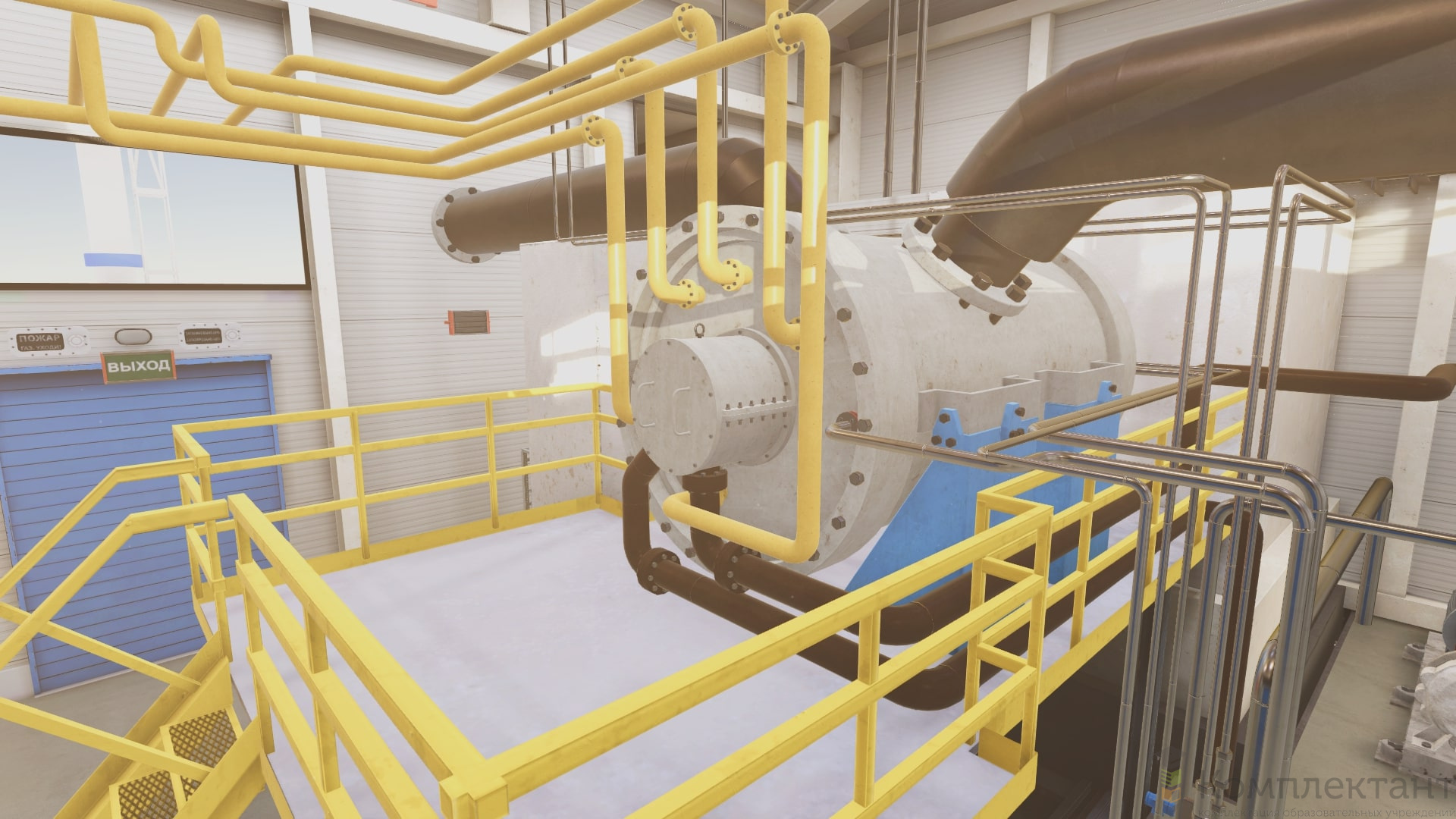 Виртуальный (VR) тренажер «Обслуживание и ремонт торцевого уплотнения нагнетателя природного газа» воссоздает ситуацию, в которой пользователь попадает в блок компрессора газоперекачивающего агрегата (ГПА). Пройдя инструктаж, ему необходимо выбрать подходящие СИЗ. Далее пользователь приобретает навыки регламентной сборки-разборки сухих газодинамических уплотнений (СГУ) внутренних полостей проточной части и ротора ГПА.