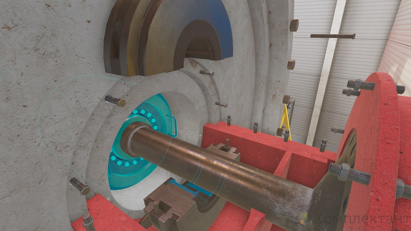 Виртуальный (VR) тренажер «Ревизия и обслуживание подшипника опорного, нагнетателя природного газа» воссоздает ситуацию, в которой пользователь приобретает навыки регламентной сборки-разборки опорного подшипника ротора компрессора в составе газоперекачивающего агрегата (ГПА) для проведения планового обслуживания или ремонта подшипника.