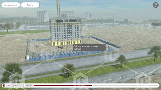 Позволяет демонстрировать в виде анимированных 3D моделей процесс строительства жилого монолитного многоэтажного здания, предоставлять возможность исследовать график и этапы строительства, предоставлять возможность пошагово наблюдать за процессом строительства жилого дома.