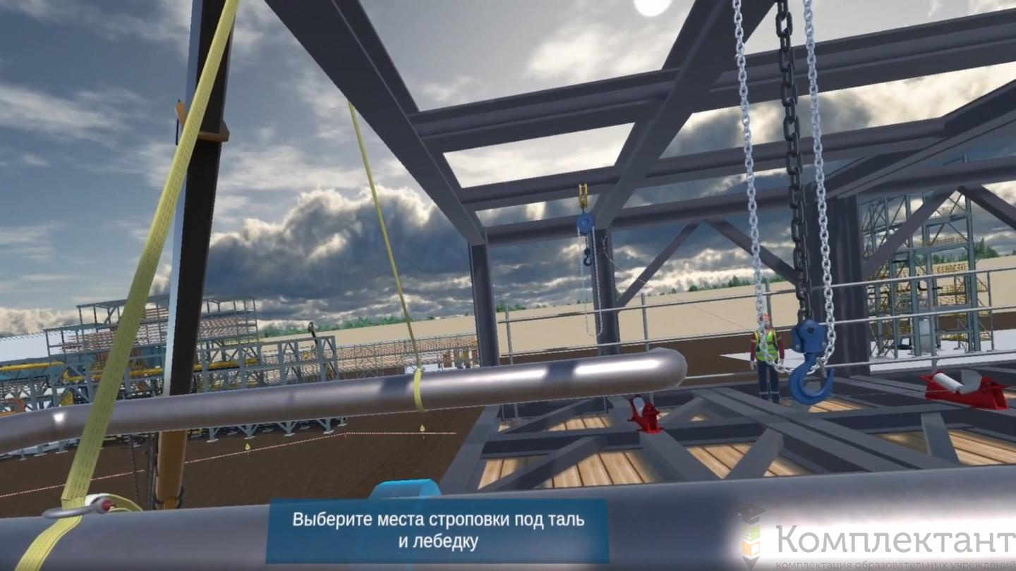 Виртуальный (VR) тренажер «Грузоподъемные работы» обучает безопасным методам подъема и перемещения грузов с использованием грузоподъемного крана. Виртуальная среда позволяет пользователям отрабатывать правильные приемы строповки, координацию с крановщиком и соблюдение техники безопасности при работе в стесненных условиях и на значительной высоте.