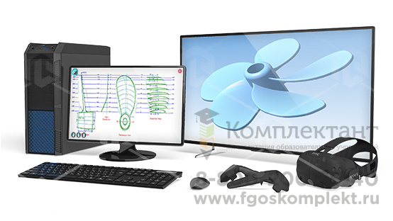 С помощью высококачественной трехмерной графики на основе данных из лабораторной работы формируется вариативная трехмерная модель гребных винтов разных диаметров и с разными шагами, затем измеряются с помощью виртуальных моделей инструментов измеряются характеристики винтов в соответствии с описанной в работе методикой и формируется отчет.